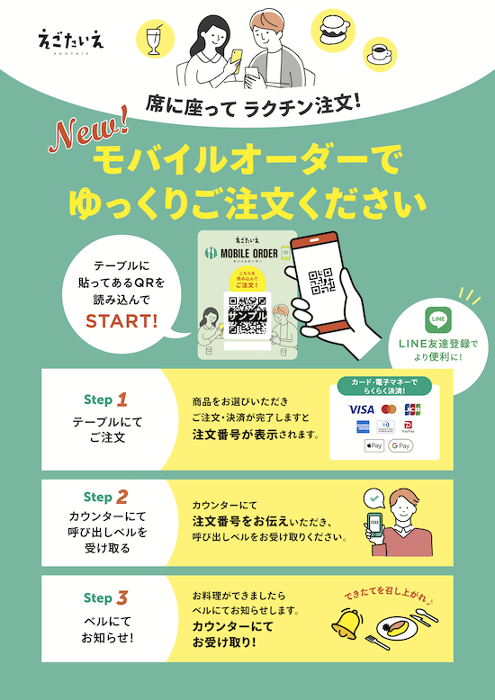 お飲み物7:00 – 22:00 (ご注文は21:00まで)